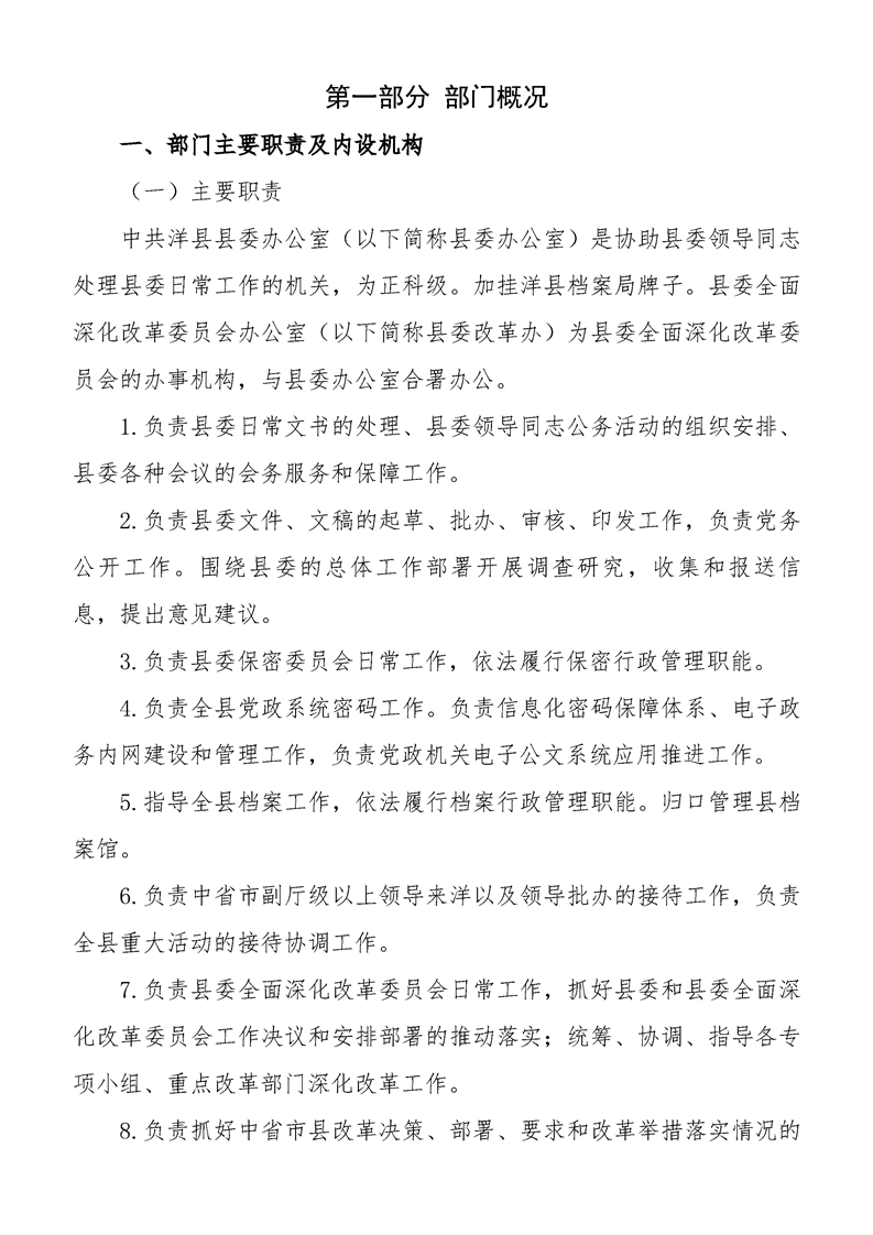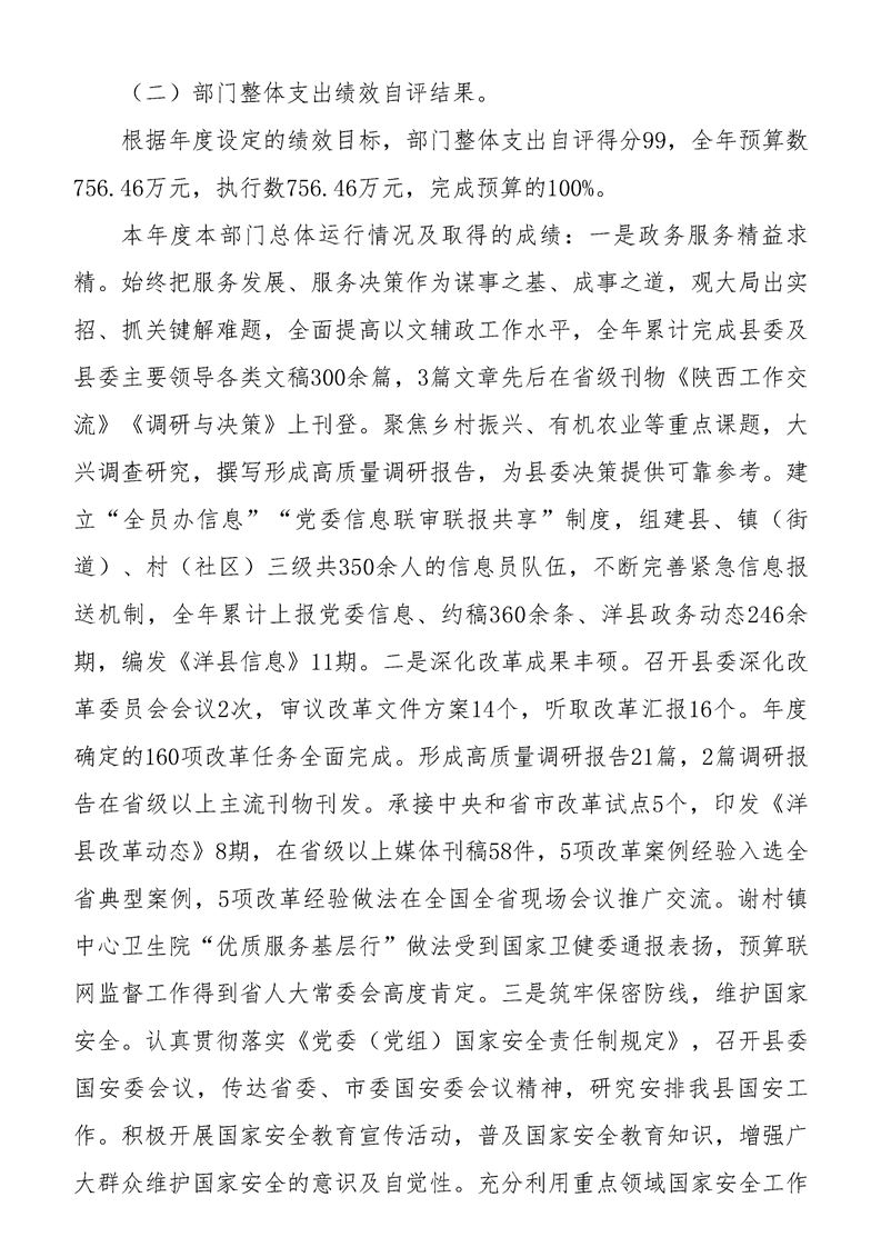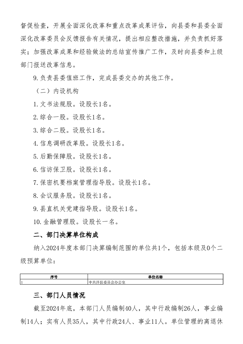 | 内容概述 | 中共洋县委员会办公室2024年度部门决算 | ||||