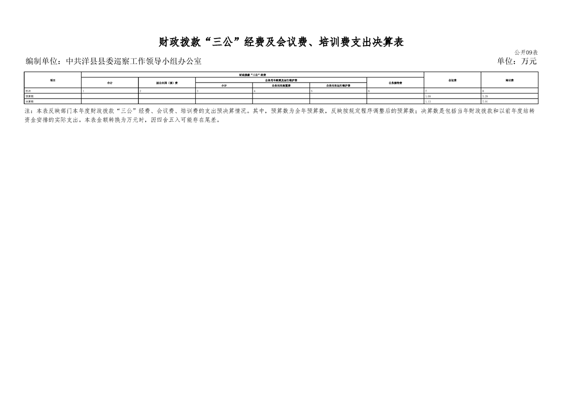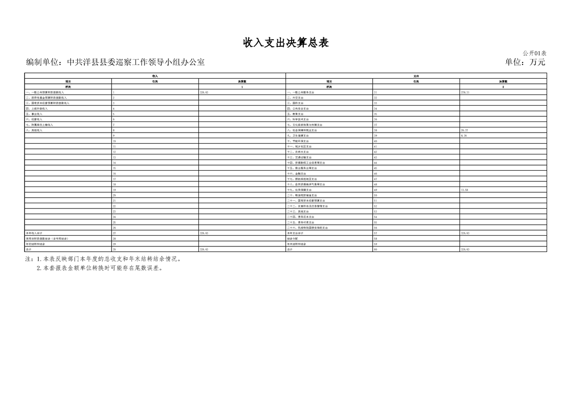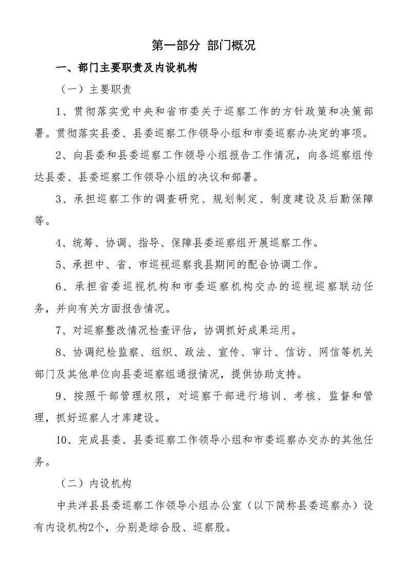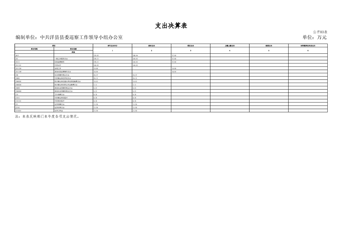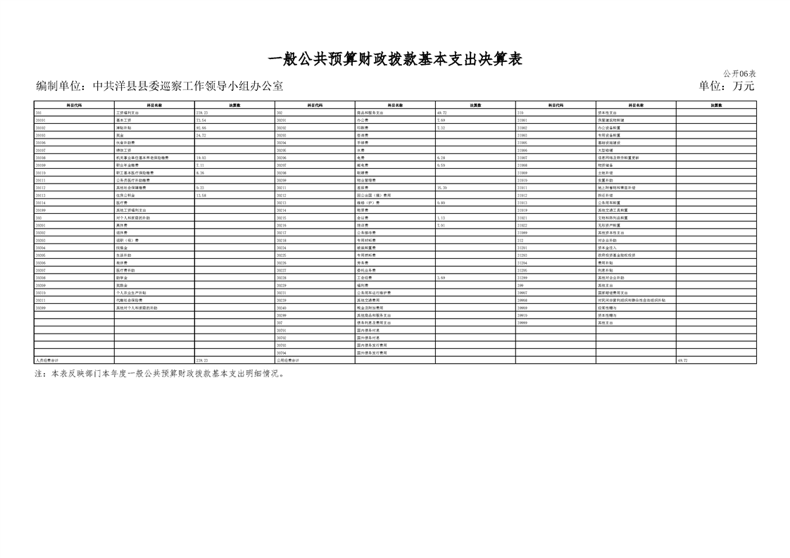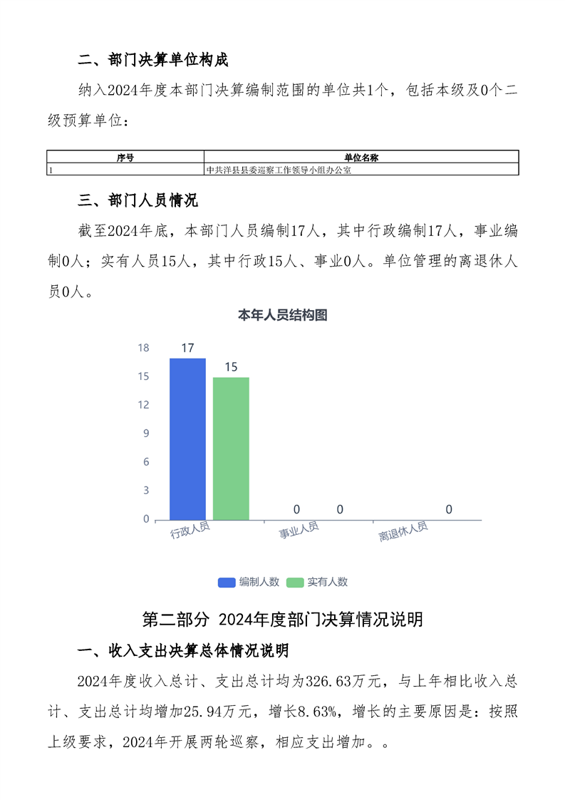 | 内容概述 | 中共洋县县委巡察工作领导小组办公室2024年度部门决算 | ||||