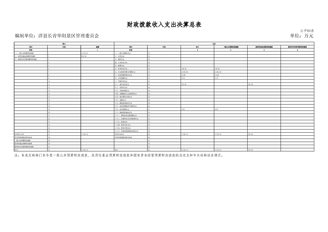 | 内容概述 | 洋县长青华阳景区管理委员会2024年度部门决算 | ||||
