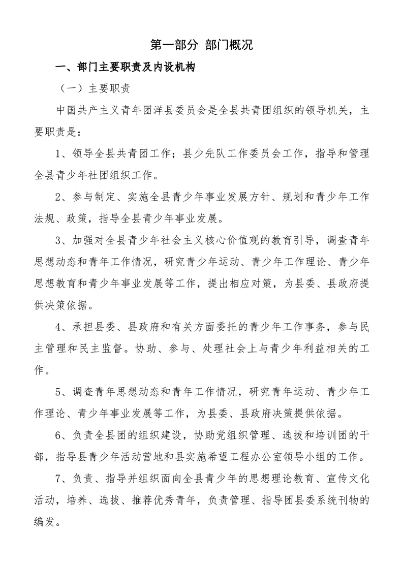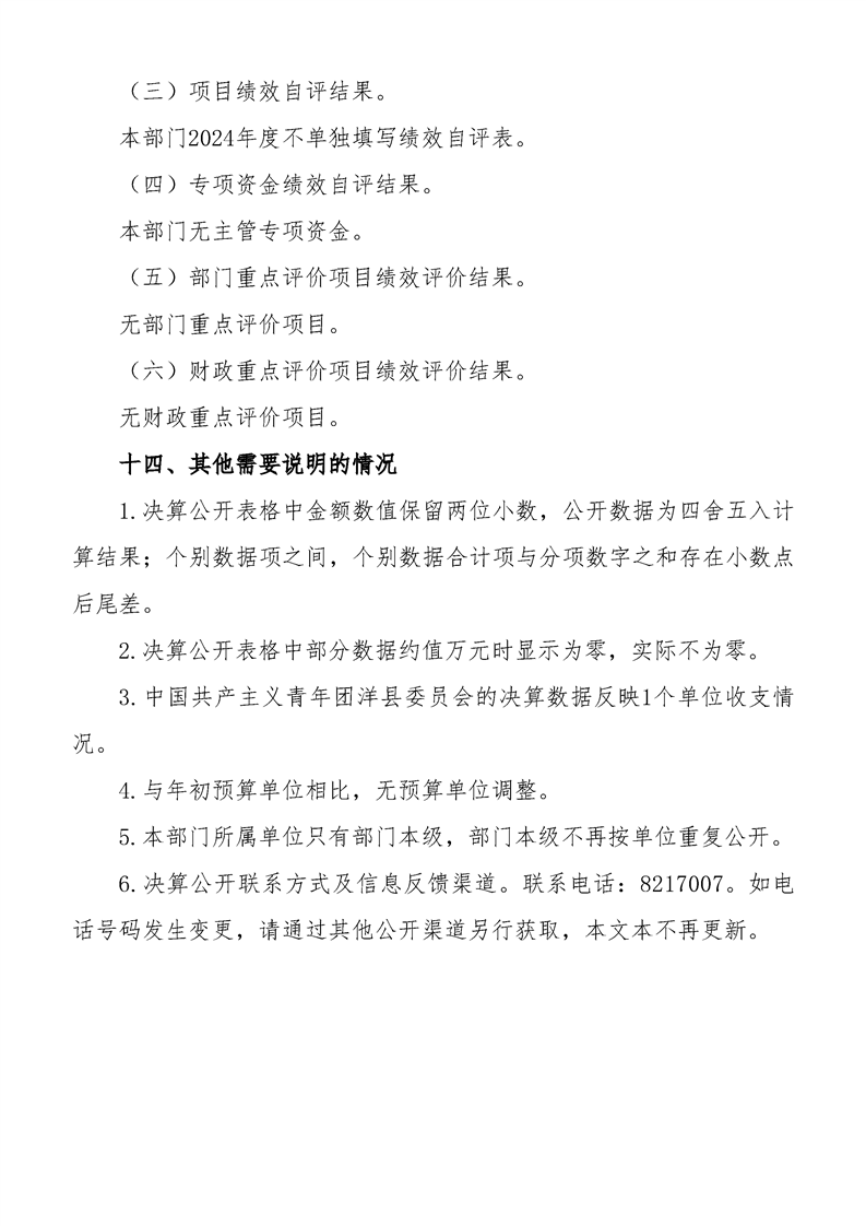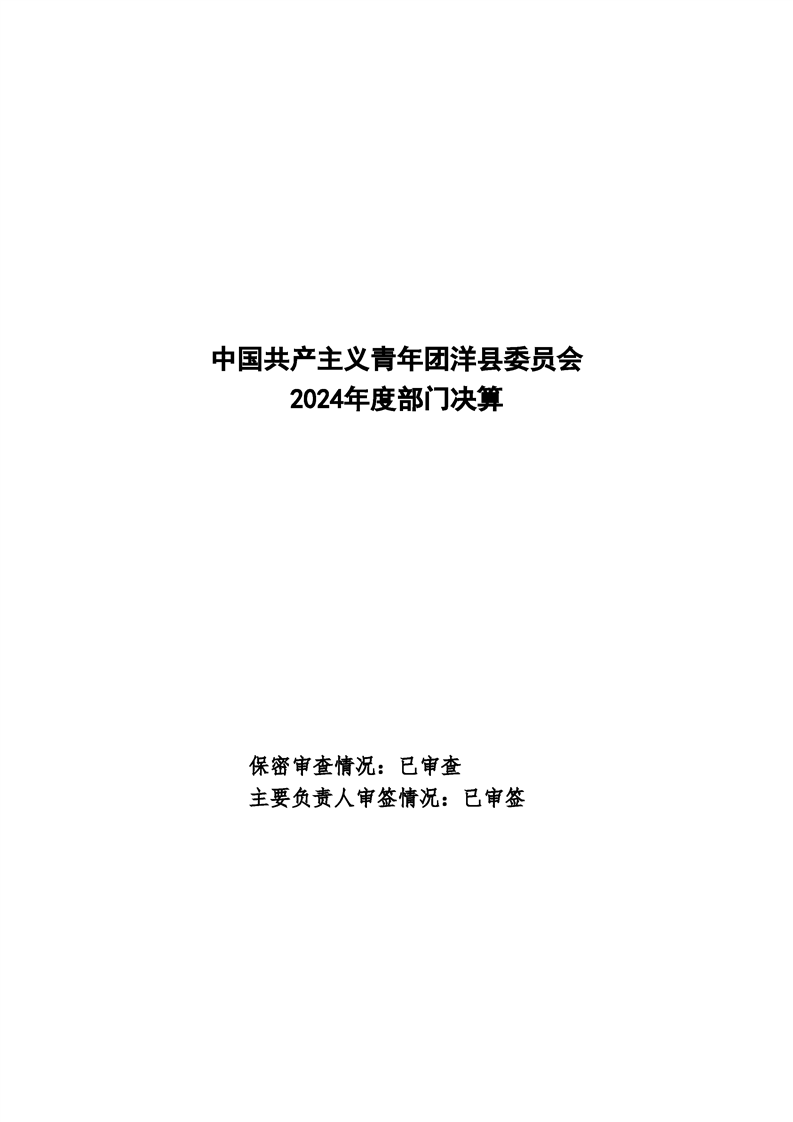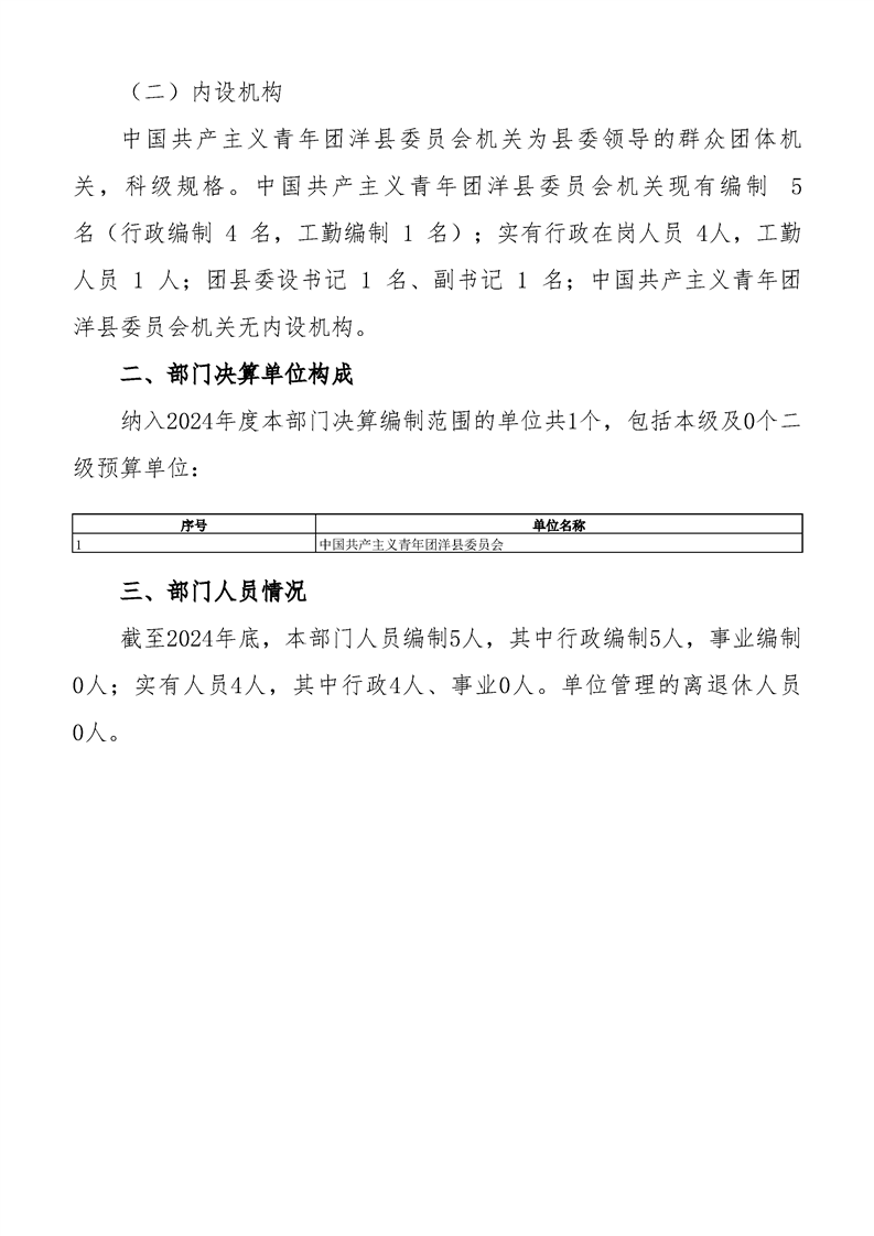 | 内容概述 | 中国共产主义青年团洋县委员会2024年度部门决算 | ||||