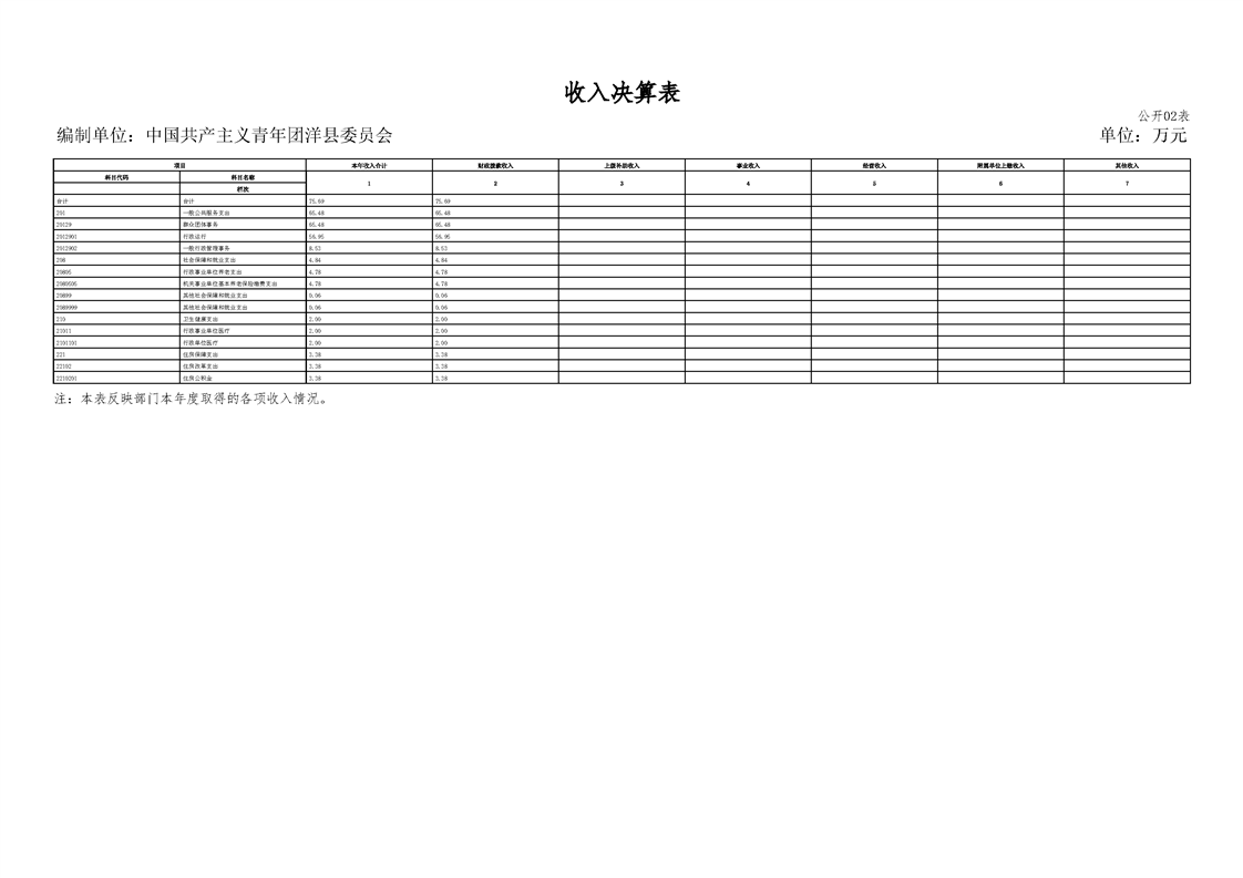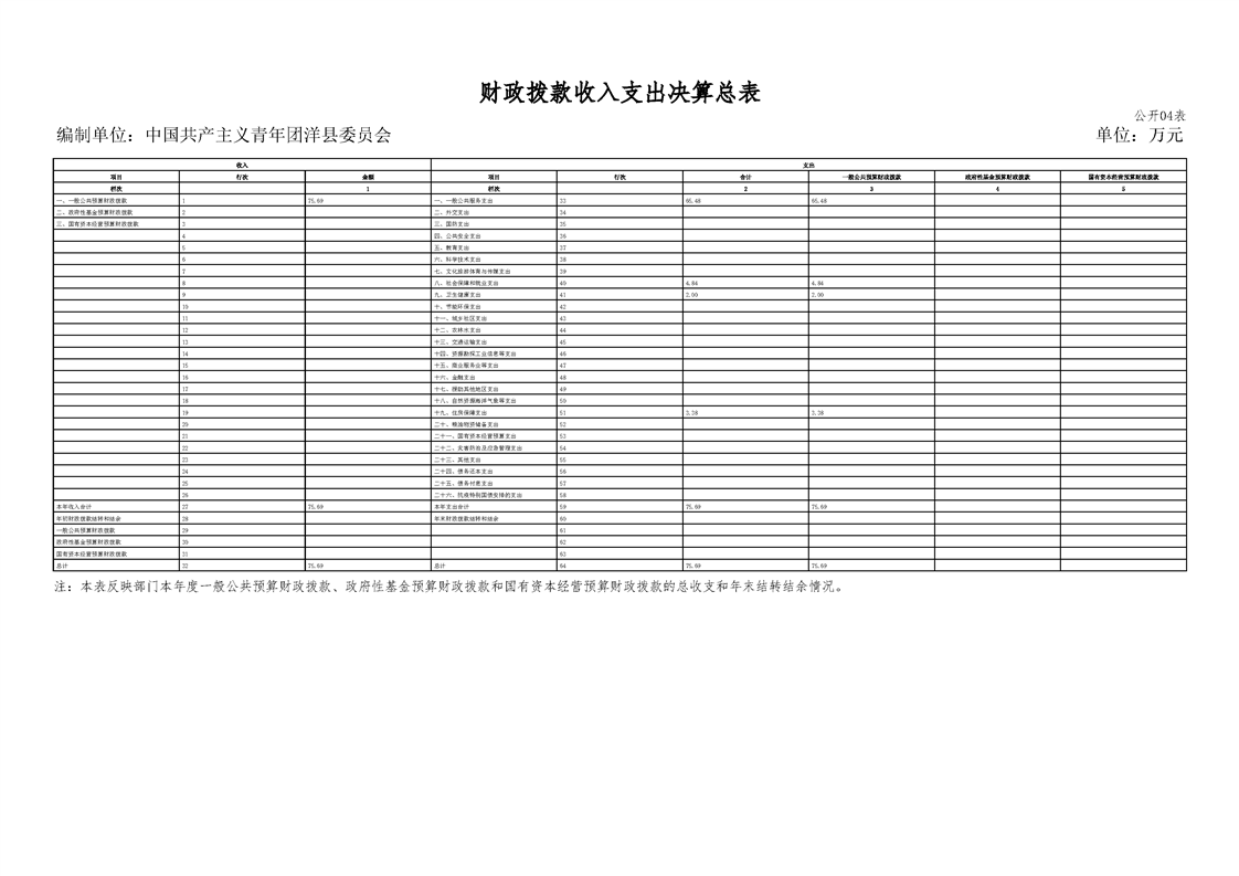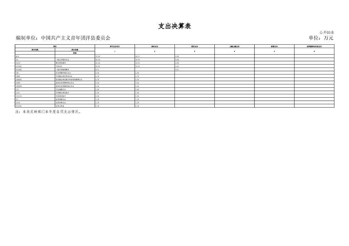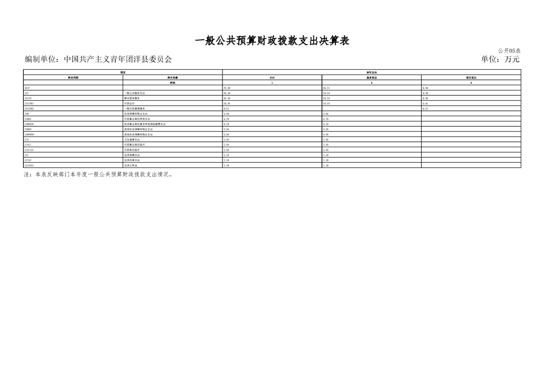 | 内容概述 | 中国共产主义青年团洋县委员会2024年度部门决算 | ||||