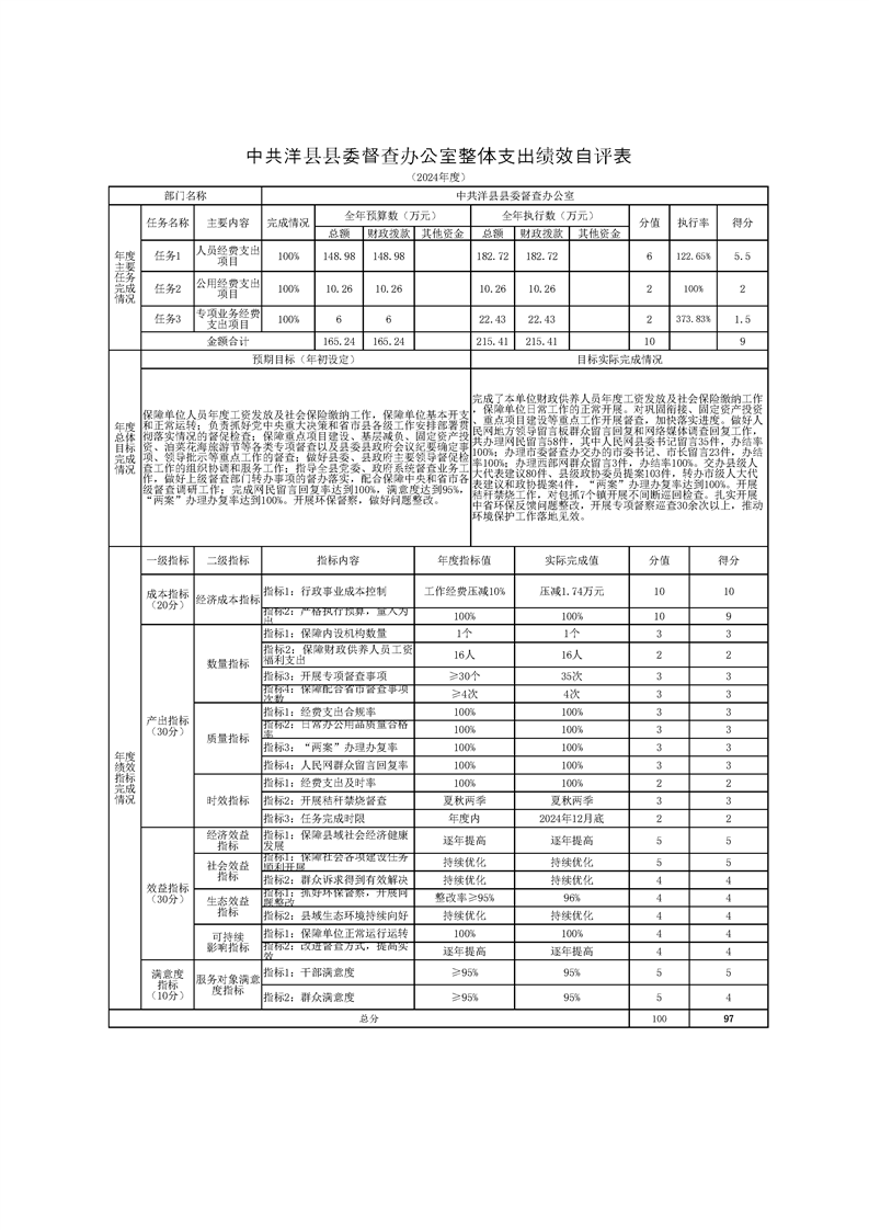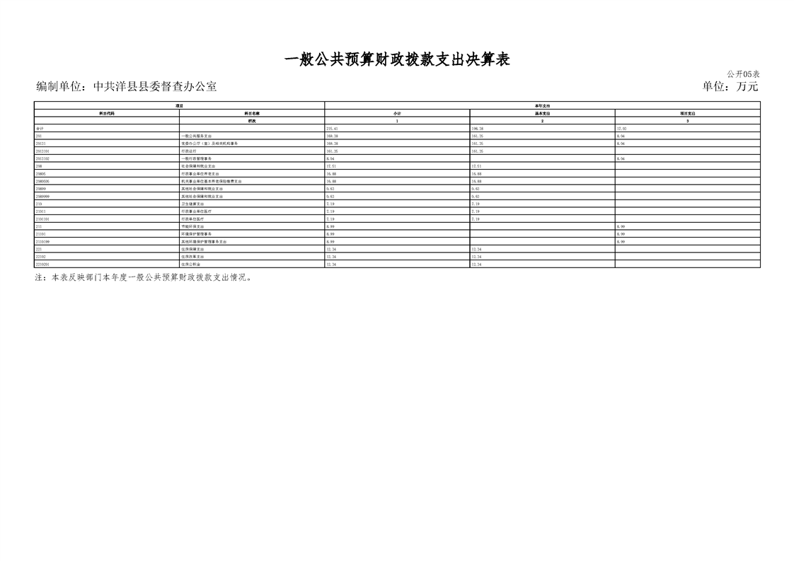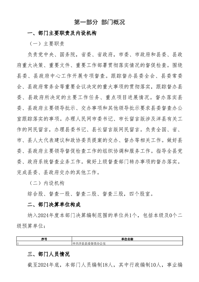 | 内容概述 | 中共洋县县委督查办公室2024年度部门决算 | ||||
