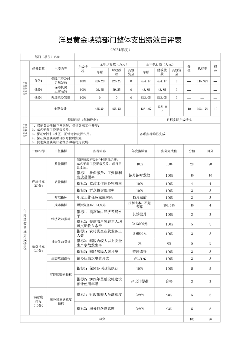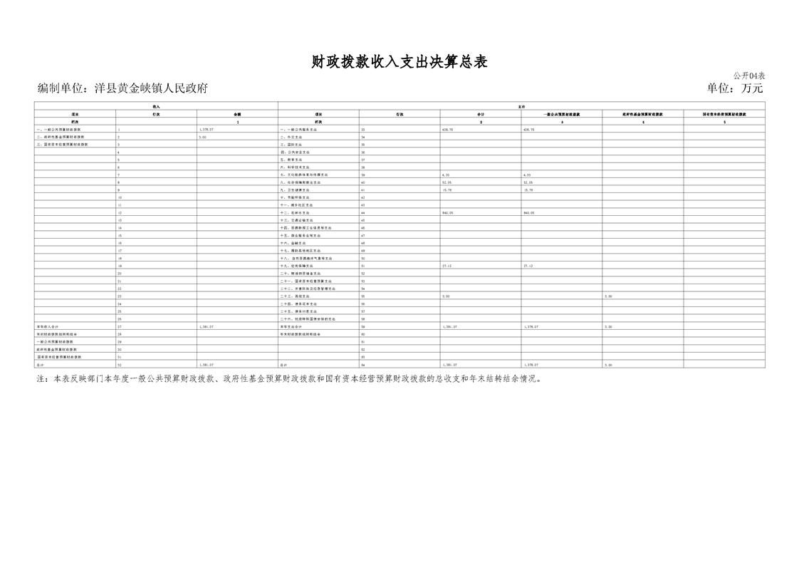 | 内容概述 | 洋县黄金峡镇人民政府2024年度部门决算 | ||||