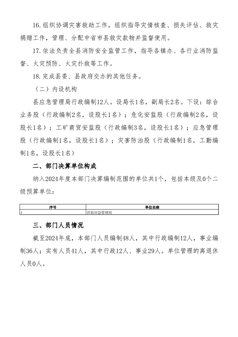 | 内容概述 | 洋县应急管理局2024年度部门决算 | ||||