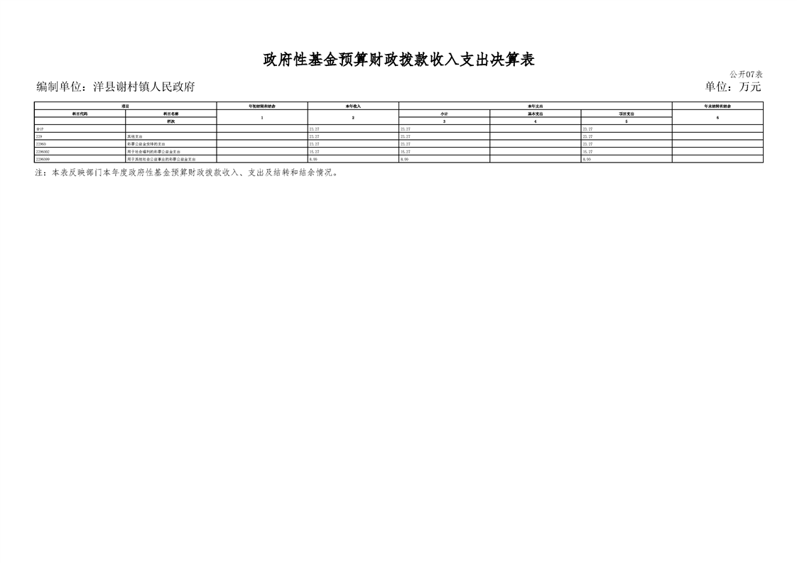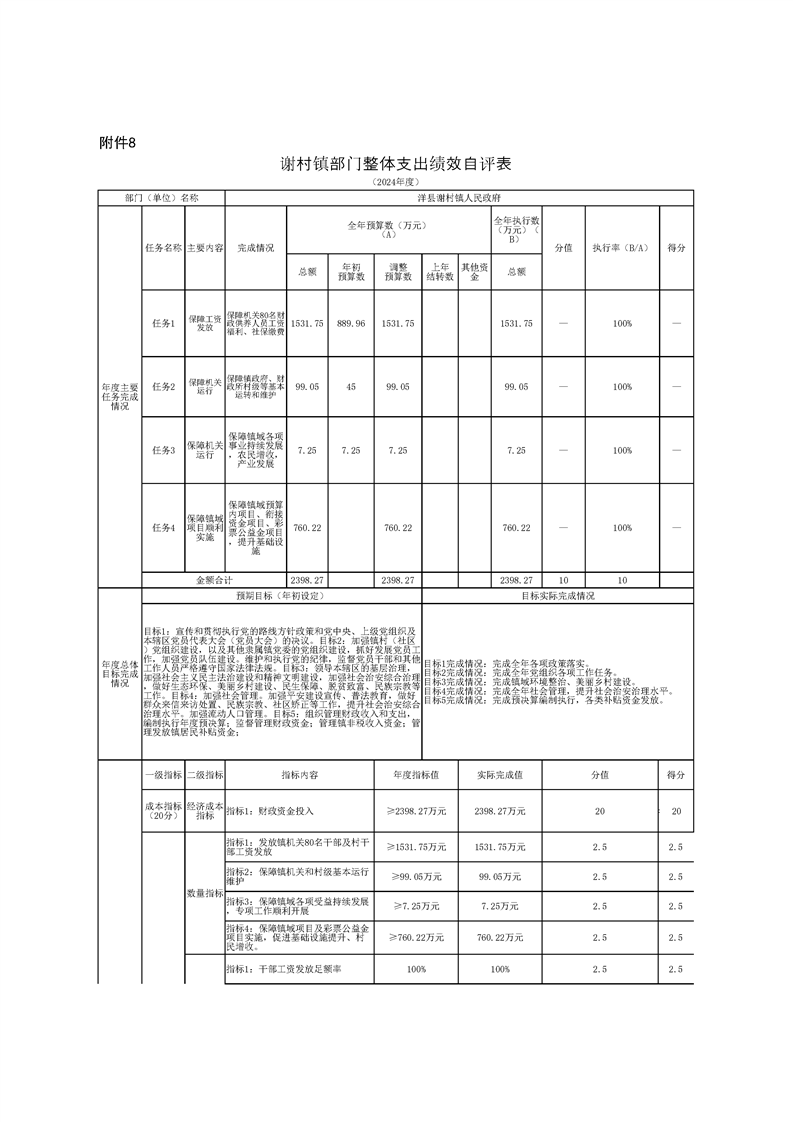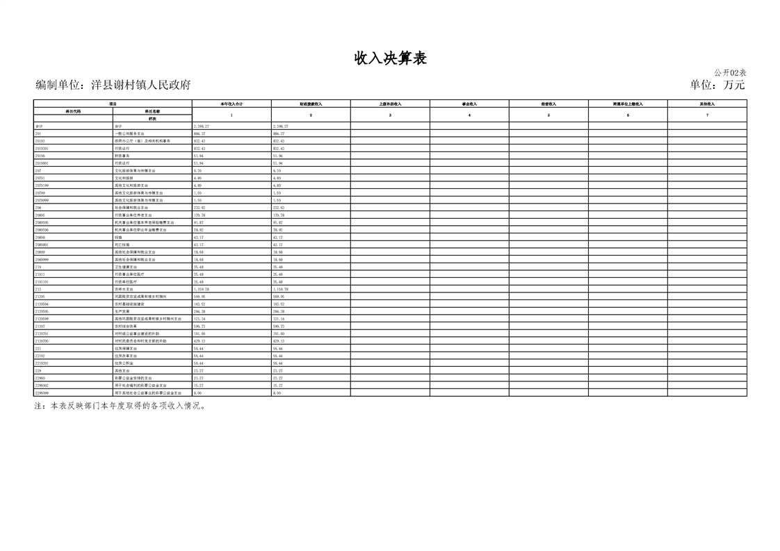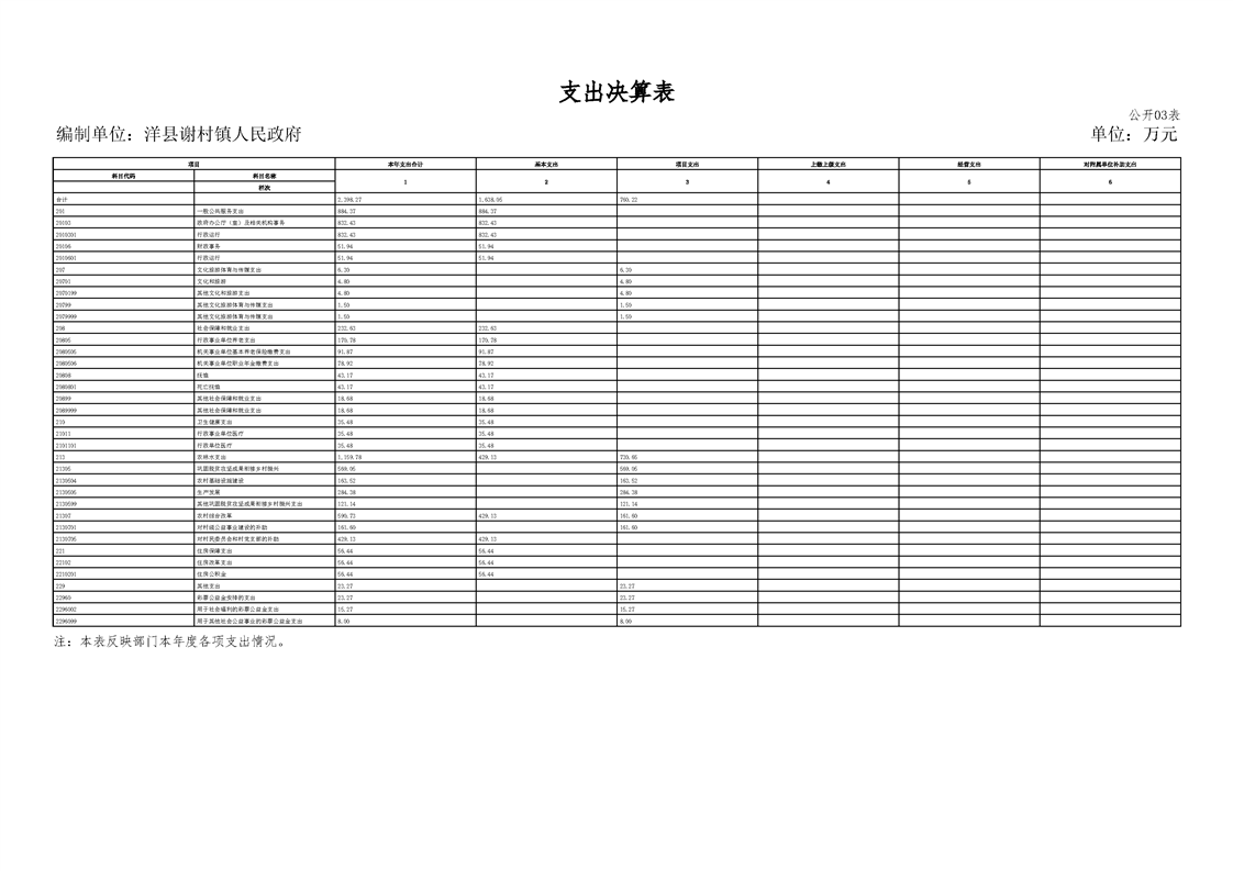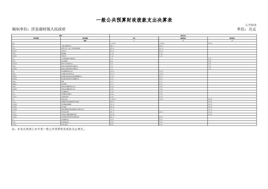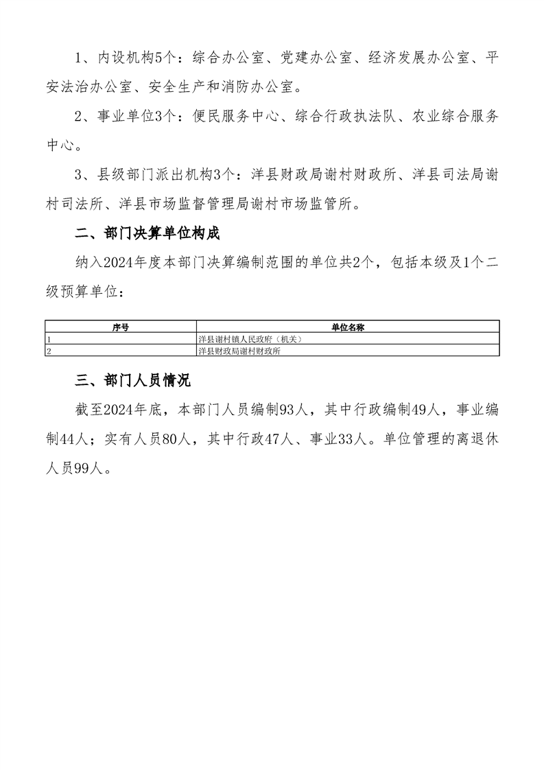 | 内容概述 | 洋县谢村镇人民政府2024年度部门决算 | ||||