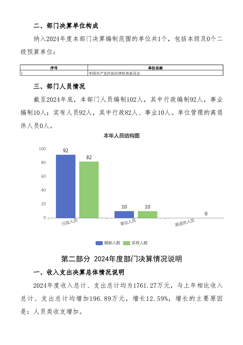 | 内容概述 | 中国共产党洋县纪律检查委员会2024年度部门决算 | ||||