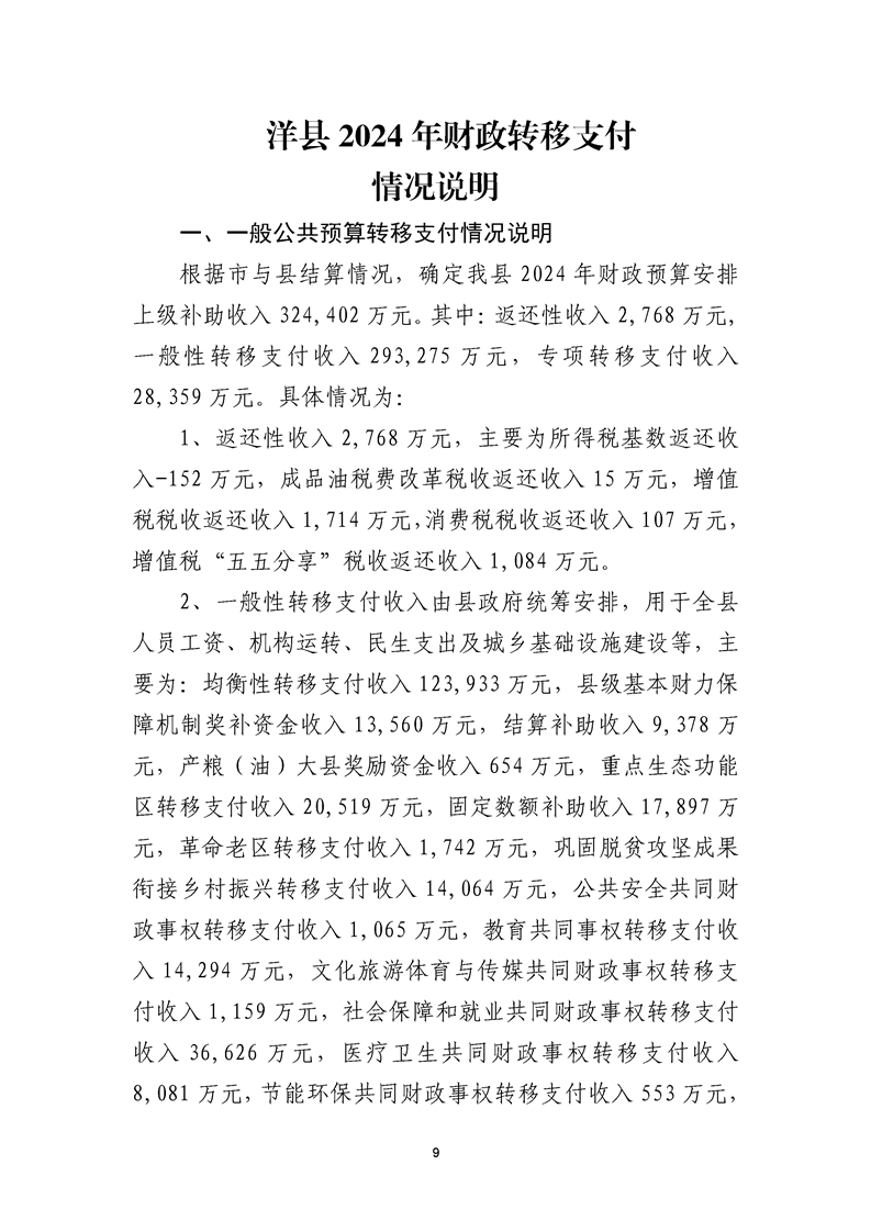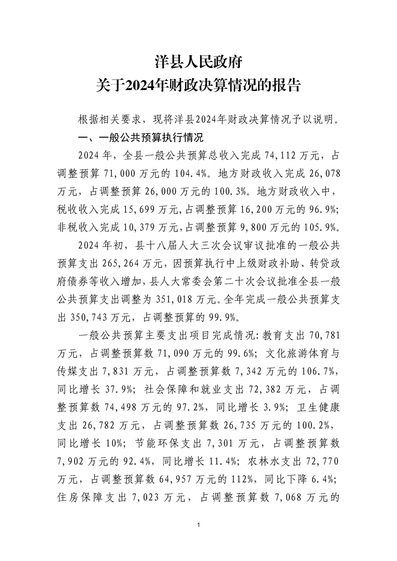 | 内容概述 | 洋县人民政府关于2024年财政决算情况的报告 | ||||