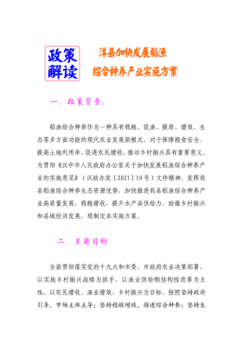 【音频解读】 洋县加快发展稻渔综合种养产业实施方案 |