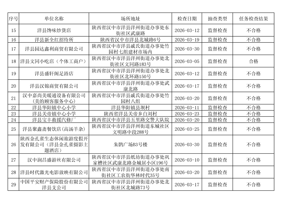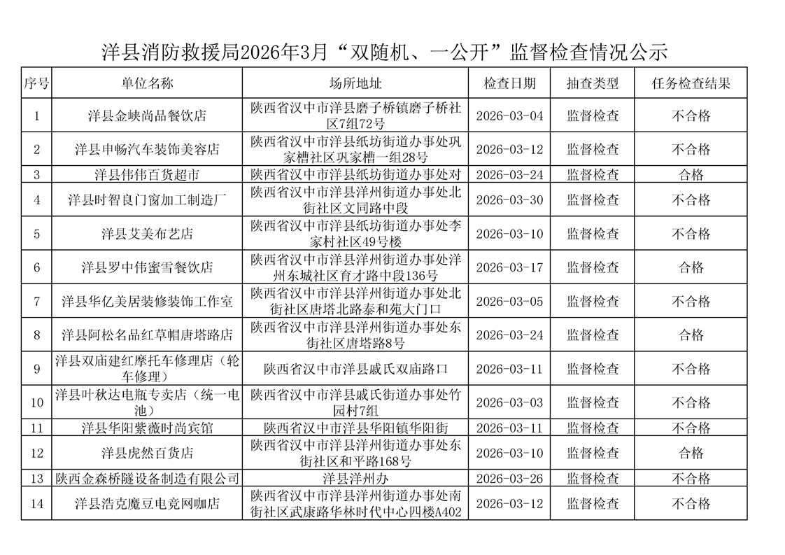 洋县消防救援局2026年3月“双随机、一公开”监督检查情况公示