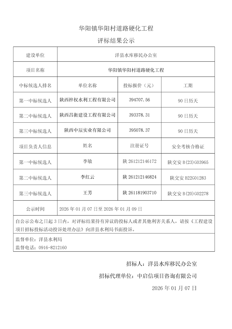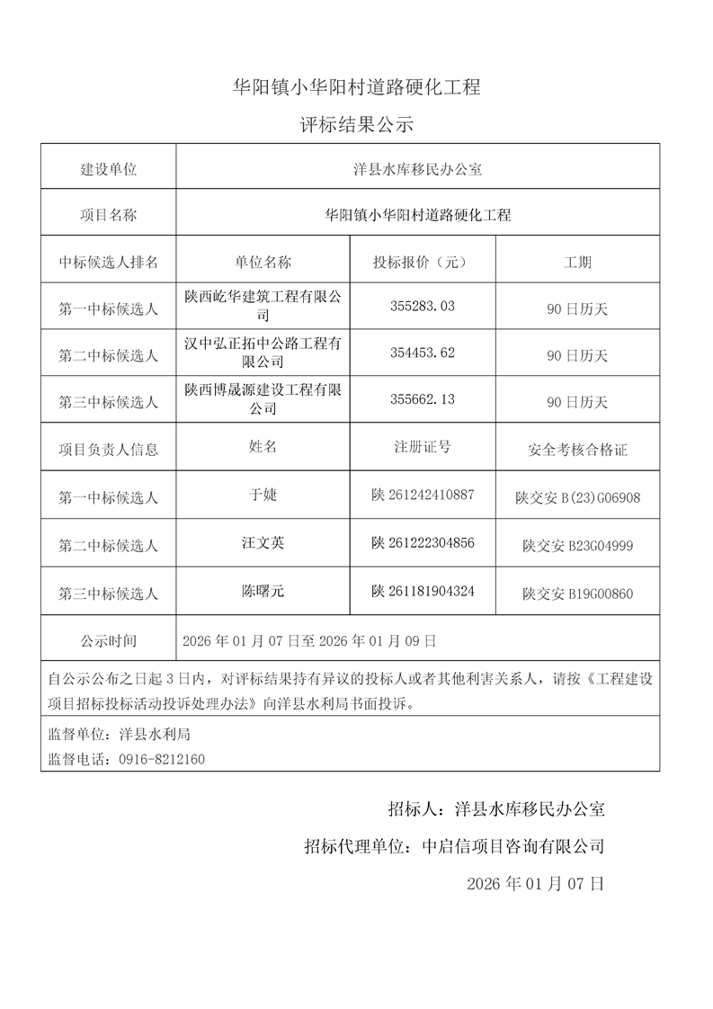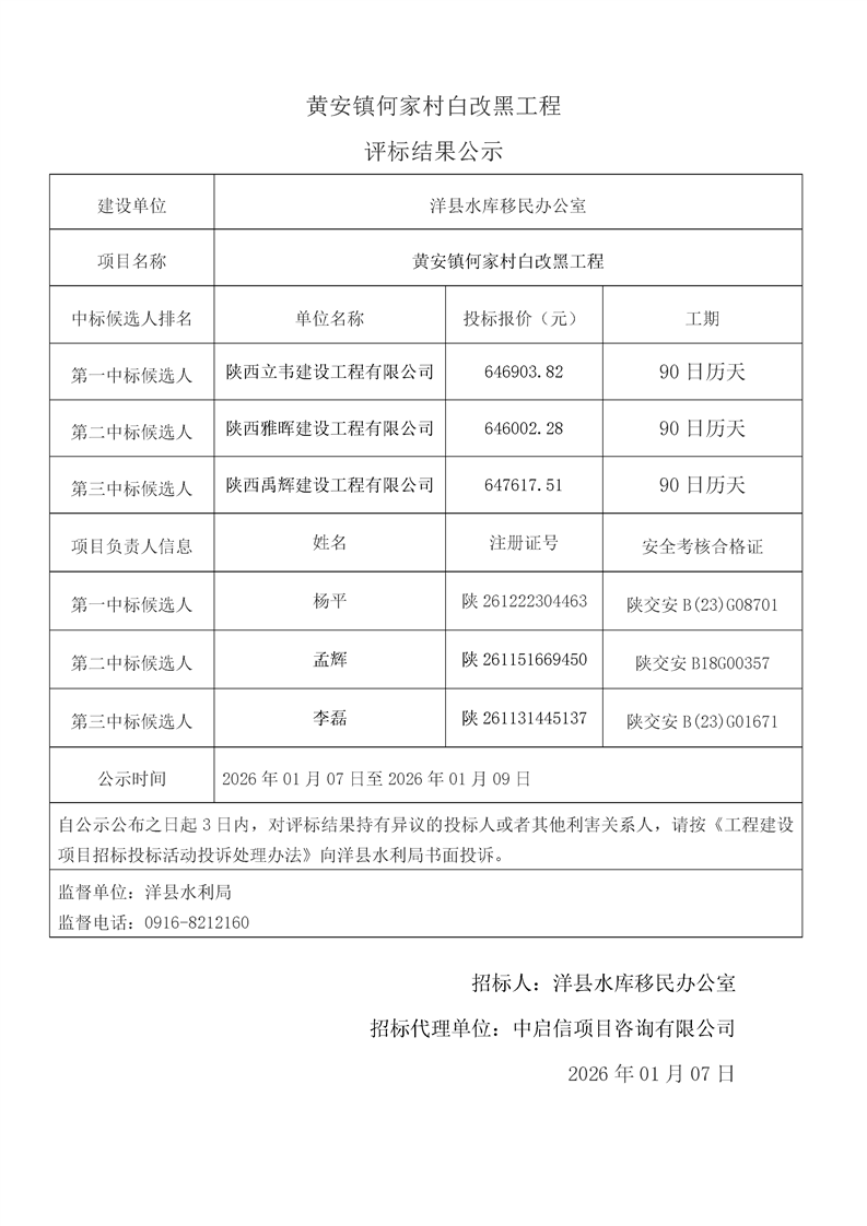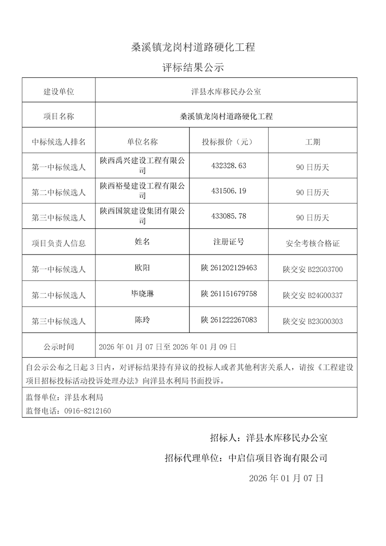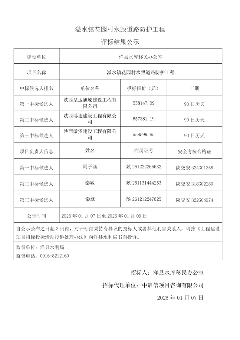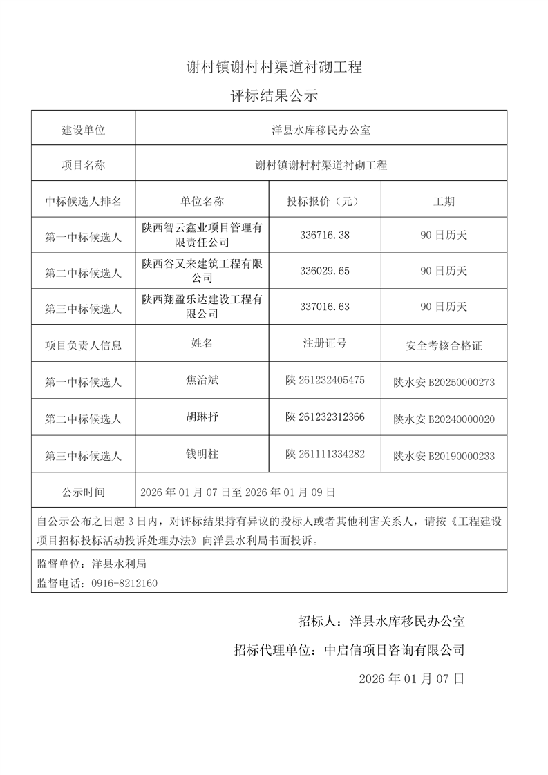 | 内容概述 | 桑溪镇龙岗村,谢村镇五间村、东坡村,华阳镇小华阳村、华阳村,黄金峡镇杨庄村,黄家营镇周家沟村,纸坊街道办事处清凉村,黄家营镇真符村道路硬化工程;溢水镇花园村水毁道路防护工程;黄安镇何家村白改黑工程;黄安镇张堡村、闫堡村、朴树村,槐树关镇茶坊村,洋州街道办东咀村美丽家园建设工程;谢村镇谢村村、四兴村渠道衬砌工程;2025年第三批中央水库移民扶持基金项目监理服务评标结果公示 | ||||